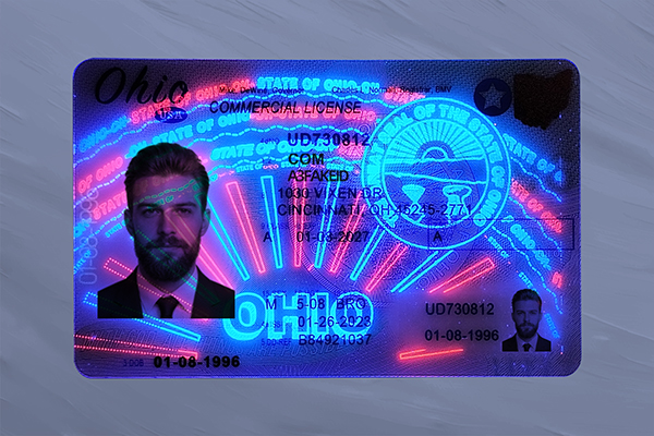 - Use a UV light to reveal Ohio-style security patterns on the front surface