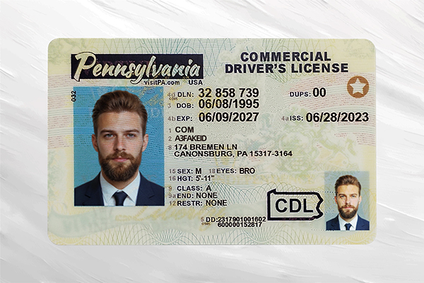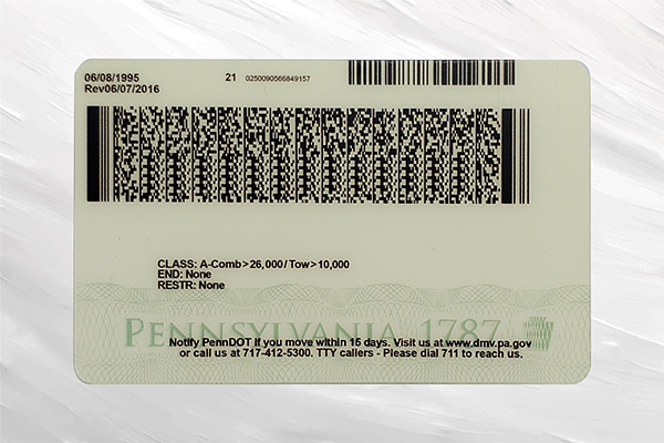 - Barcode and magnetic stripe zones follow Pennsylvania CDL formatting structure