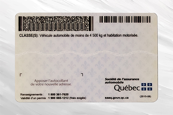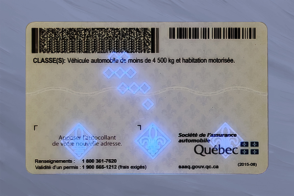 The back of the Quebec IDs card features a blue state emblem that is visible under UV light.